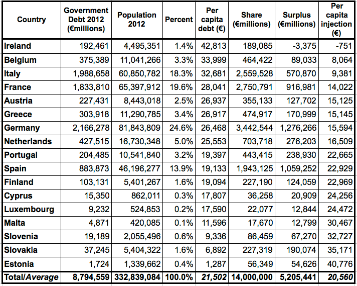 The Eurozone needs €19.3 trillion of interest free money creation to fix the debt crisis